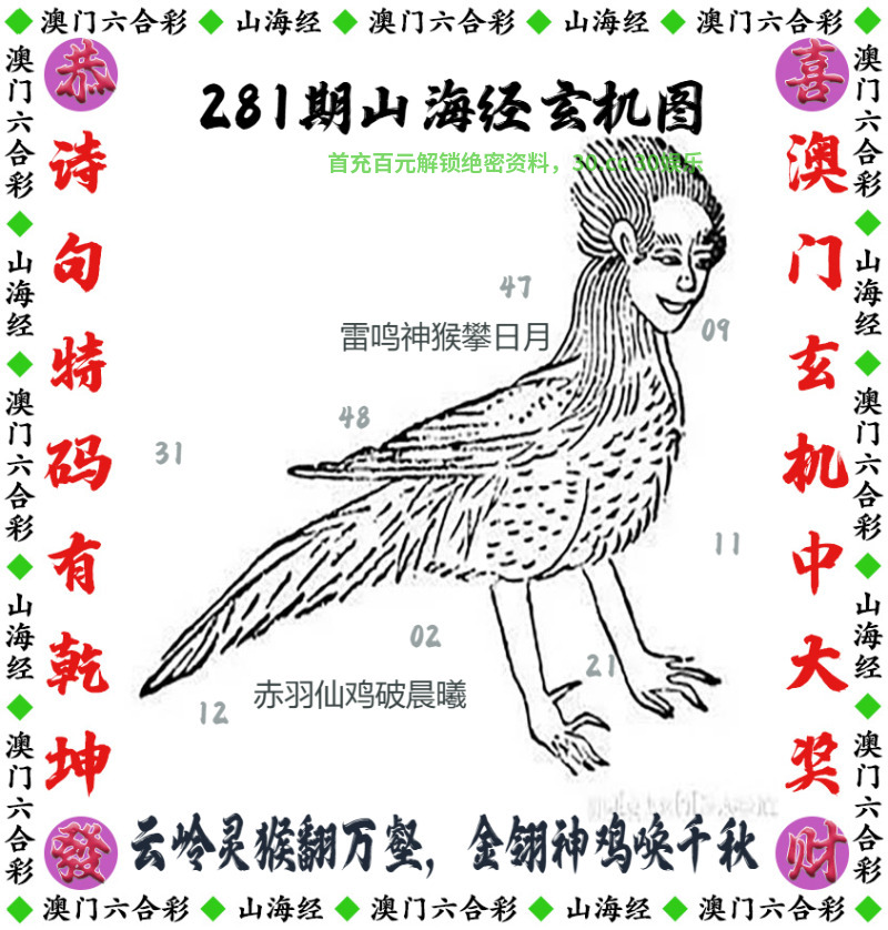 281期:天【兔龙猴马】地【鸡虎鼠羊】开:羊47中 |